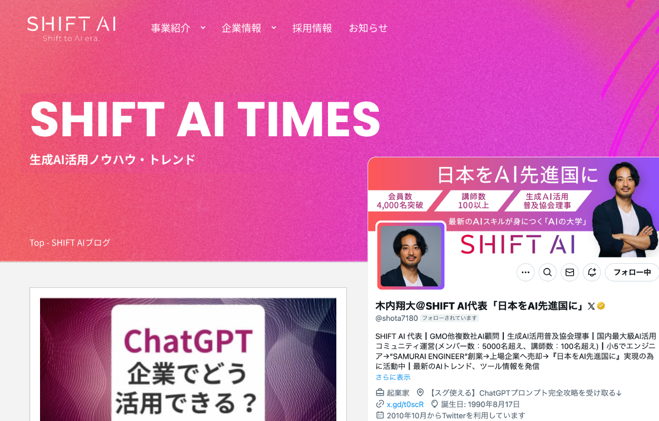 主な発信媒体 X(旧Twitter)、Instagram、Facebook、TikTok、YouTube、SHIFT AI TIMES